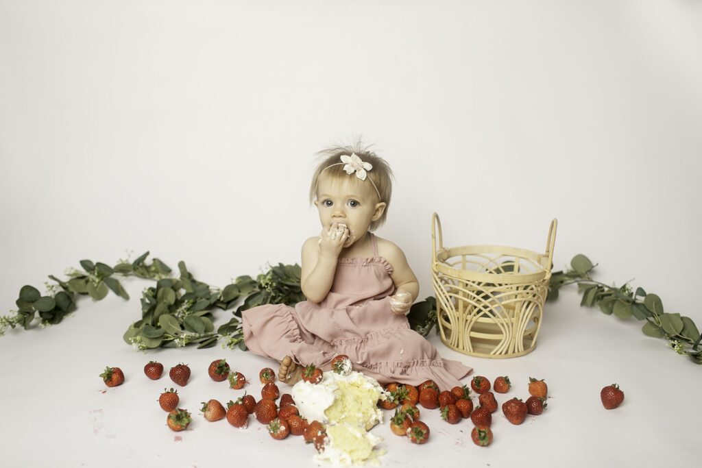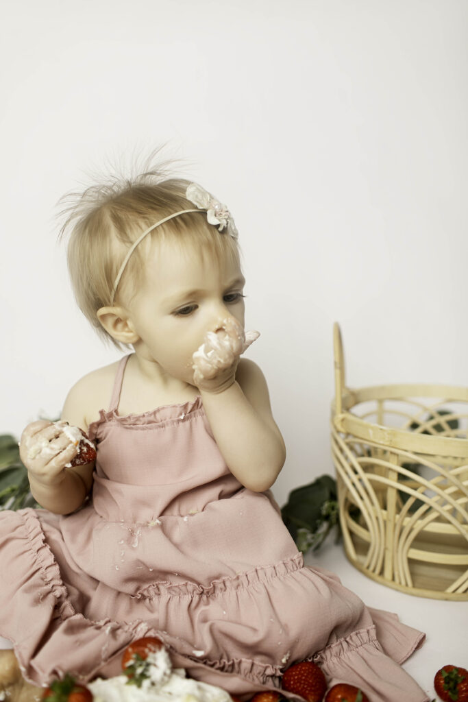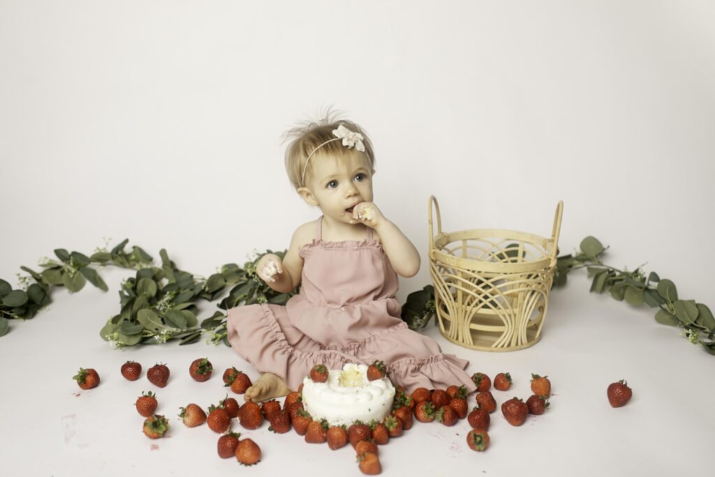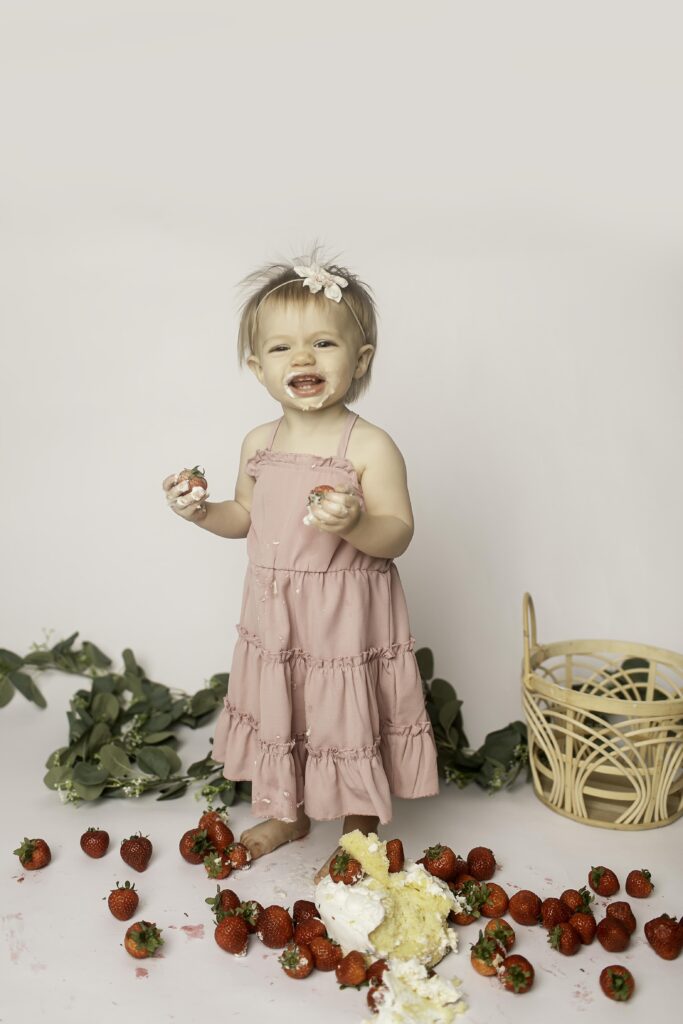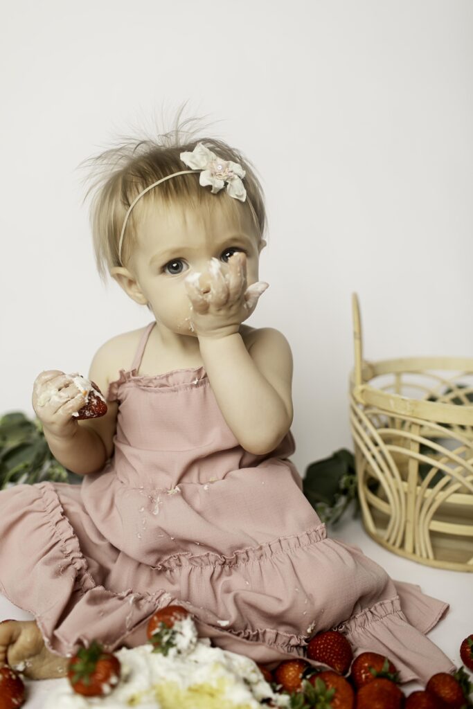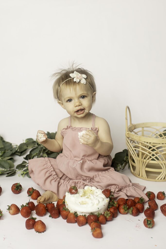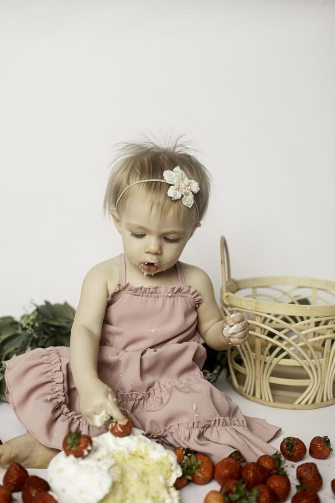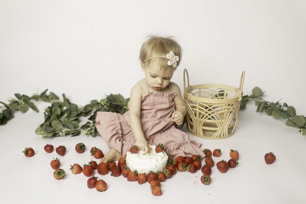 Watching her interact with the strawberries and pose (or play!) for the camera reminded me of why first birthday sessions are so special. It’s about growth, joy, and documenting this fleeting year before she moves on to even bigger adventures.