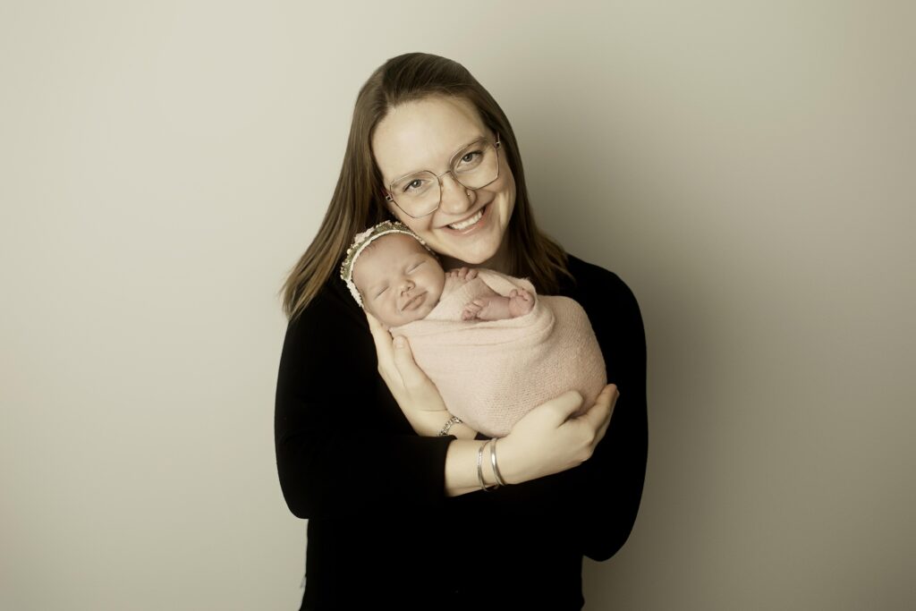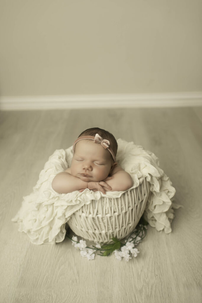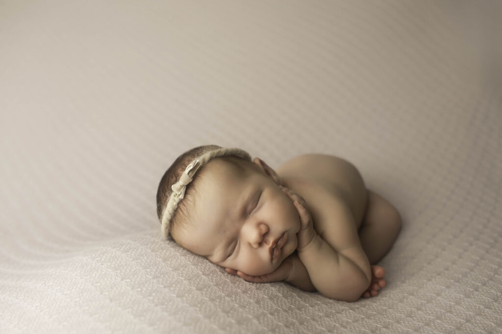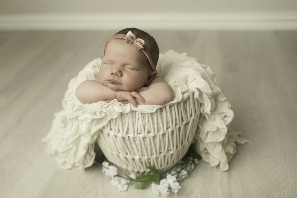 The studio environment at Chunky Monkey Photography is designed to be a peaceful, comfortable space for both babies and families. From the soft lighting to the gentle music and all the props we bring, every detail is intended to make the session feel calm and stress-free. This allows newborns to stay relaxed and cozy while we capture those signature newborn poses and candid family moments.