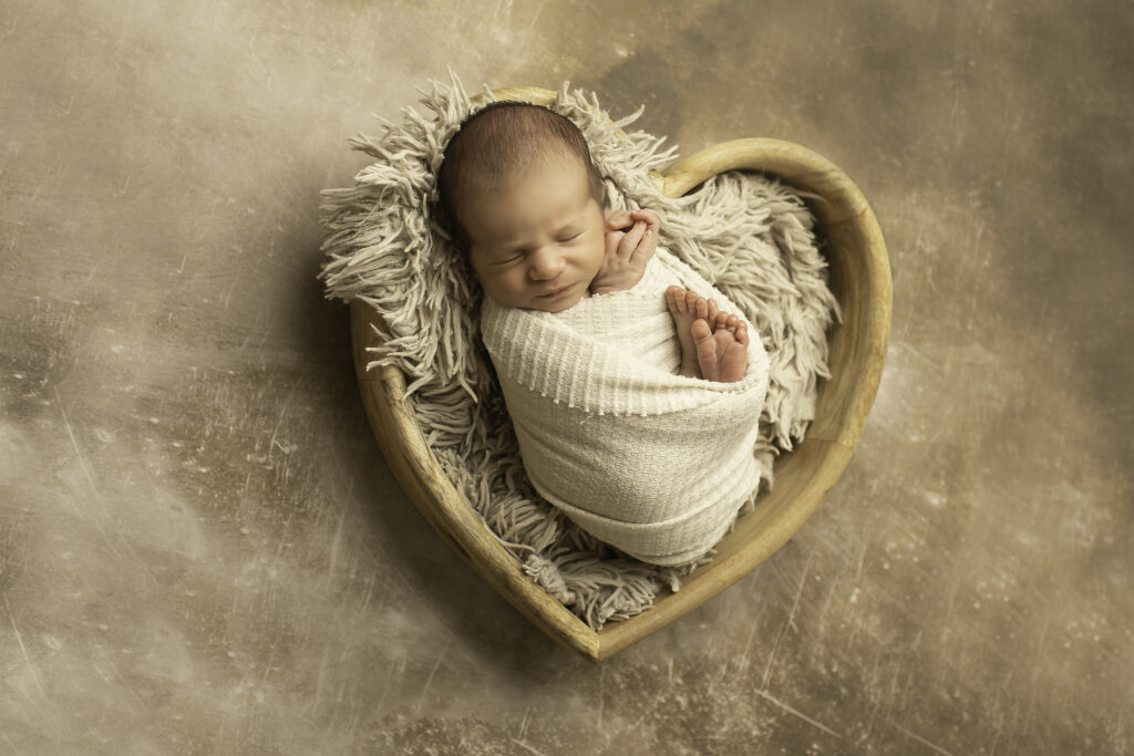 For this session, I kept the posing simple, timeless, and all about connection. Baby boy looked absolutely perfect swaddled and nestled into the wooden heart — one of my favorite props because it symbolizes the love and bond that wraps around a new baby. We also added a teddy bear for one of his solo shots, giving a touch of cozy sweetness that always tugs at the heartstrings. Wrapped poses like these not only keep newborns comfortable but also highlight just how tiny and delicate they are in those first precious weeks.