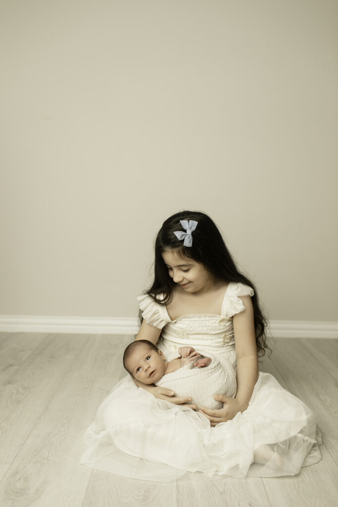 There are few things sweeter than watching a family grow — especially when I’ve had the honor of photographing them before. This session was extra special because the newborn I once had in my studio came back as a big sister, proudly bringing along her brand-new baby brother. It’s moments like this that make my heart swell. To see a little one I photographed as a baby now holding her sibling with so much love is a full-circle joy I’ll never forget.