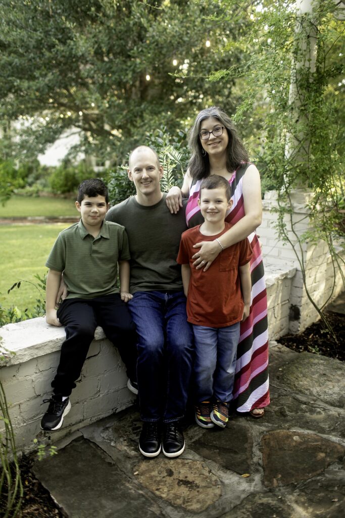 One of my favorite parts of outdoor family photography in Parker County is how the environment becomes part of the story. The trees, flowers, and winding paths at Chandor Gardens add so much character to every shot, creating timeless images that this family will cherish for years.