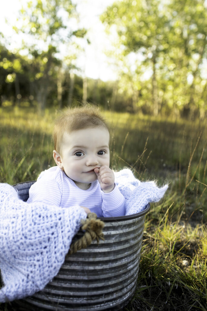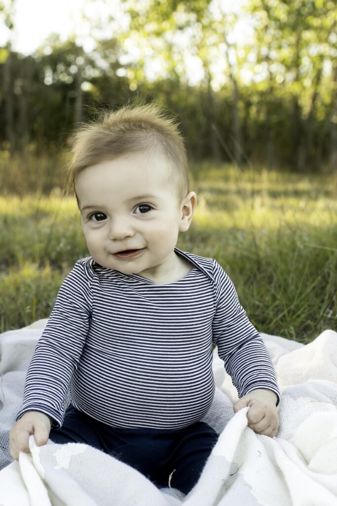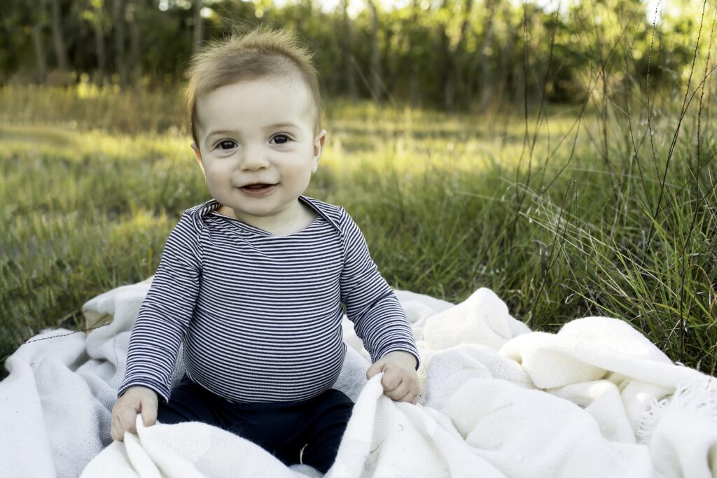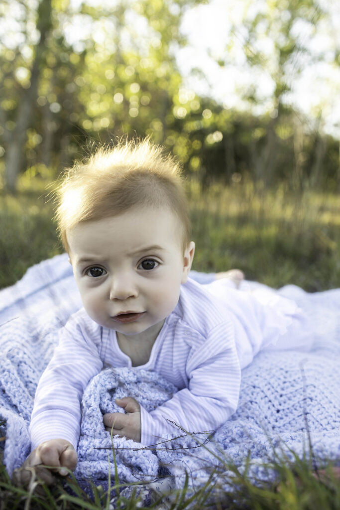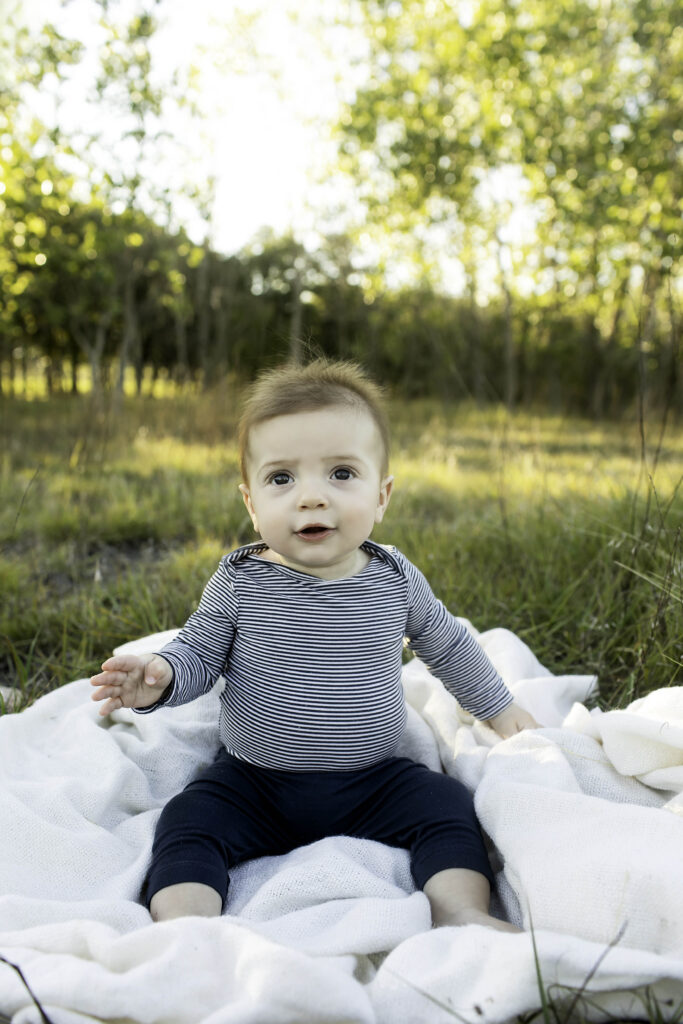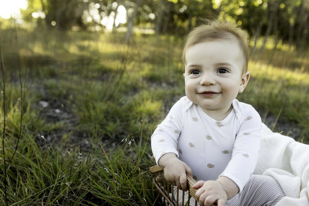 This little guy had fun sitting in the grass, grabbing his toes, and flashing the cutest smiles for mom and dad. Keeping the setup simple—just a baby, a field, and natural light—lets the focus stay right where it belongs: on your growing child and all the love surrounding them.