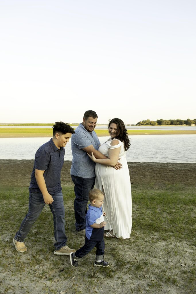 The lake setting added a serene and natural backdrop. Soft reflections, gentle waves, and lush greenery combined to create stunning compositions that highlight the family’s connection and the mom’s glowing maternity beauty. Outdoor sessions like this give an organic, fresh feel that studio setups can’t always replicate — and the movement of the water added a dynamic element that made each shot feel alive.