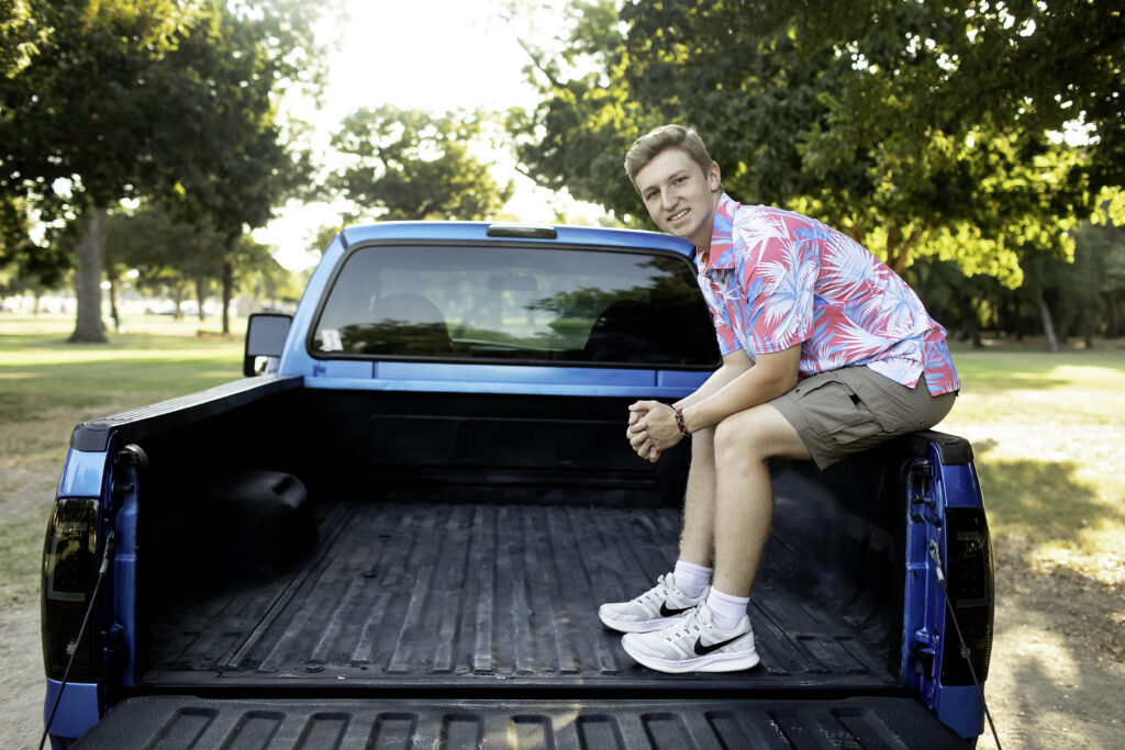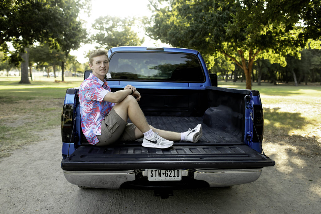 We met at Trinity Park in Fort Worth, TX, one of my favorite spots for senior sessions. The mix of open fields, trees, and that signature Fort Worth charm gave us the perfect backdrop to celebrate this milestone moment. But the real star—aside from this senior himself—was his truck! He worked so hard getting it cleaned up and ready for his session, and it was clear how much pride he takes in it. The shiny paint, polished wheels, and that classic “let’s hit the road” vibe made it the perfect prop to showcase his personality and hard work.