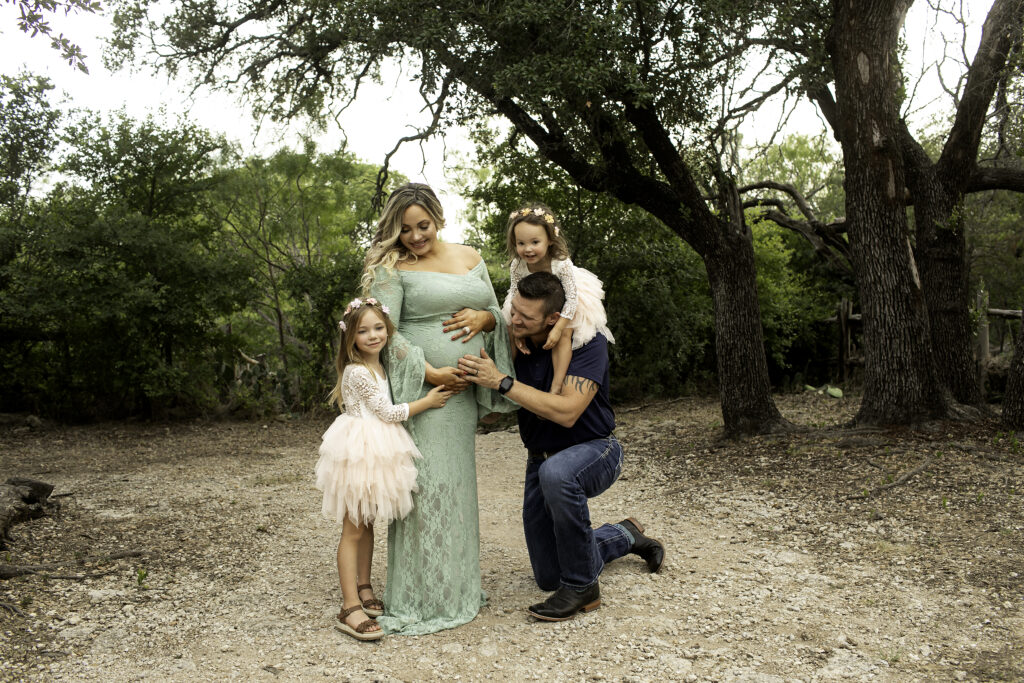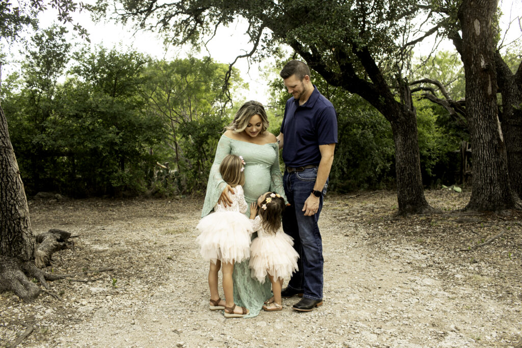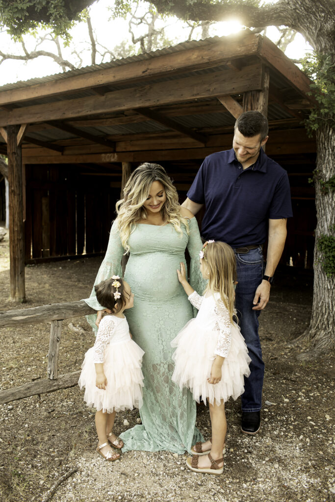 Big sisters and dad joined in to make the session even more meaningful. Their smiles, hugs, and laughter brought such warmth to every image. Capturing the bond between siblings before the baby’s arrival is one of the most rewarding parts of a maternity session. The excitement and curiosity on the big sisters’ faces made it clear how much love is already waiting for their baby brother.