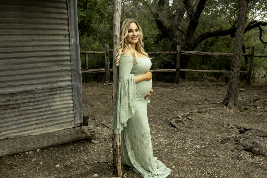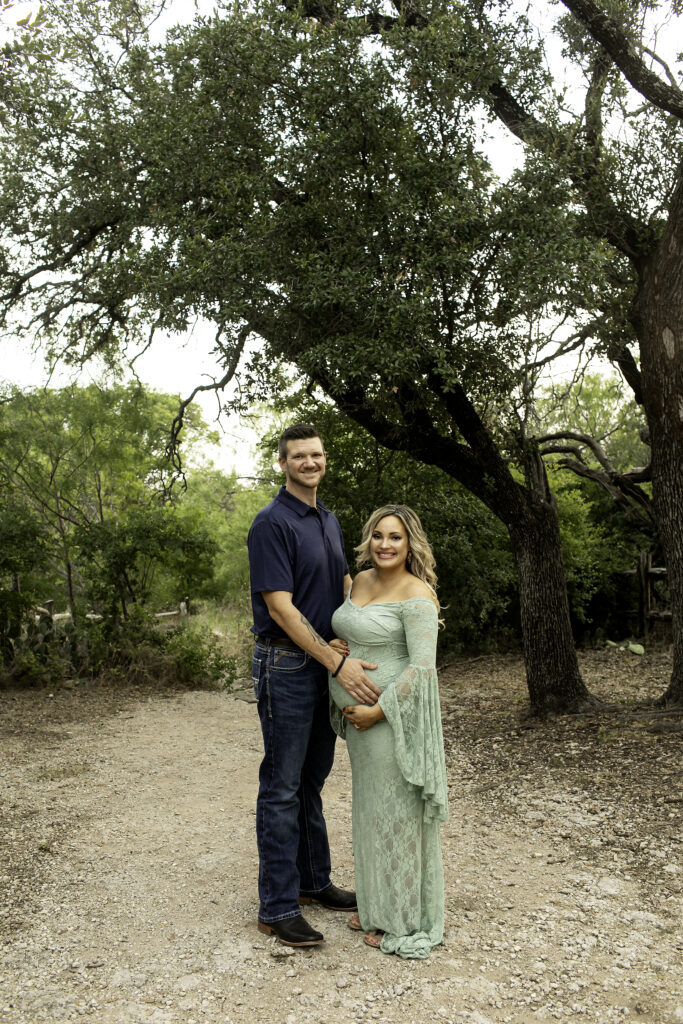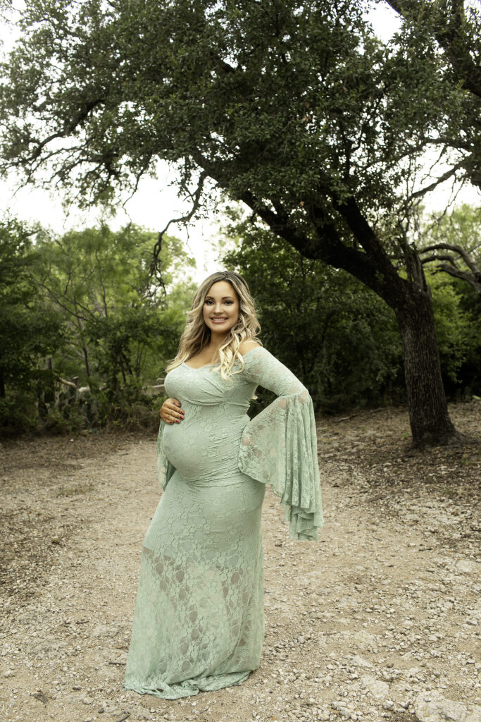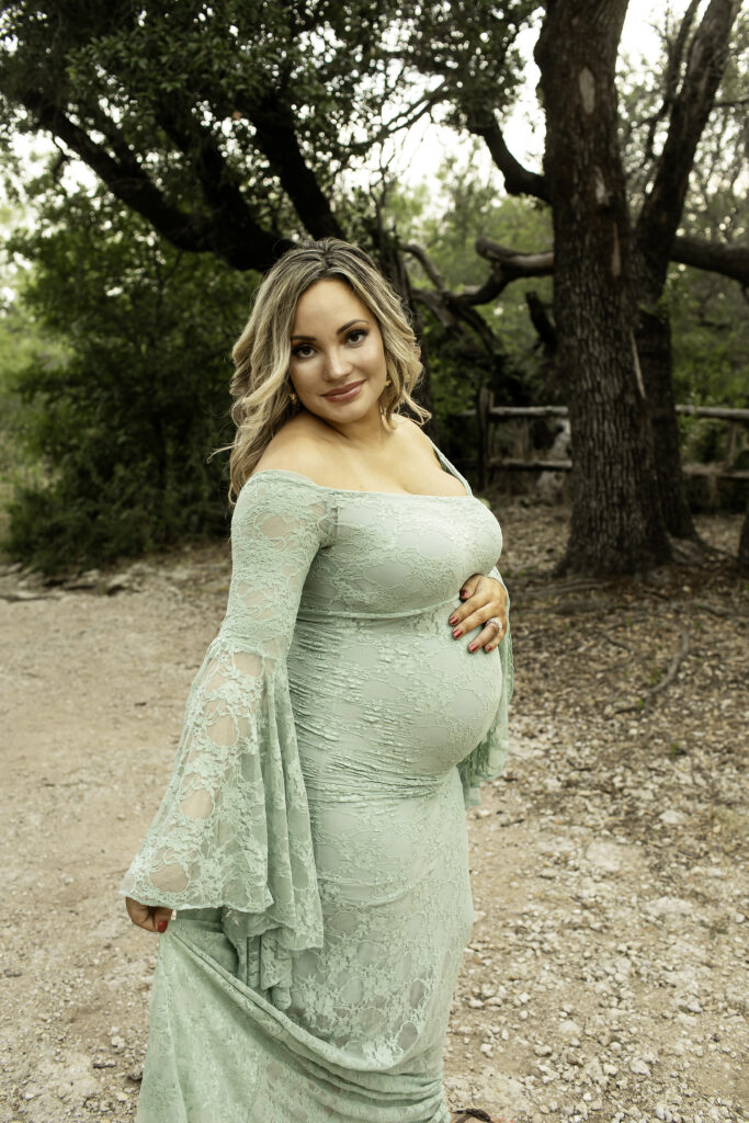 Mom looked absolutely gorgeous in a flowing green dress, which contrasted beautifully with the natural scenery of the park. The soft, natural light and lush greenery created the perfect backdrop for a session that felt both timeless and full of life. Every pose highlighted her glowing confidence and the excitement of awaiting her newest little one.