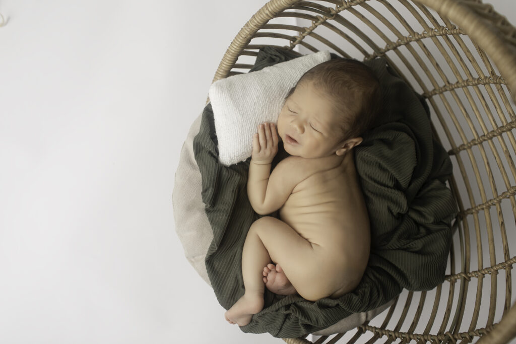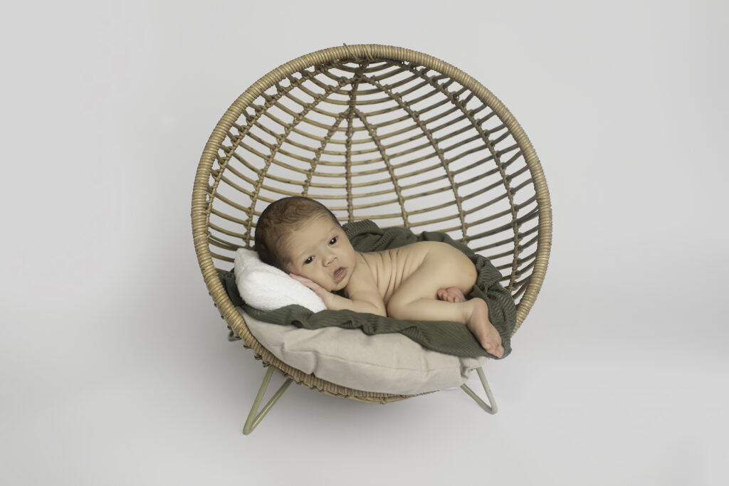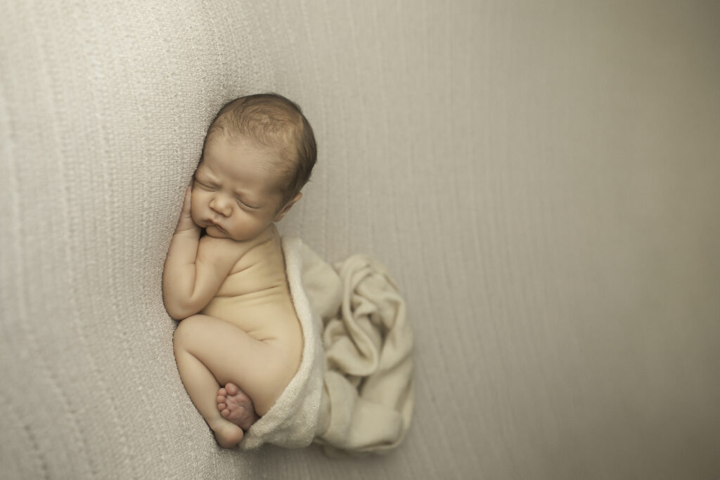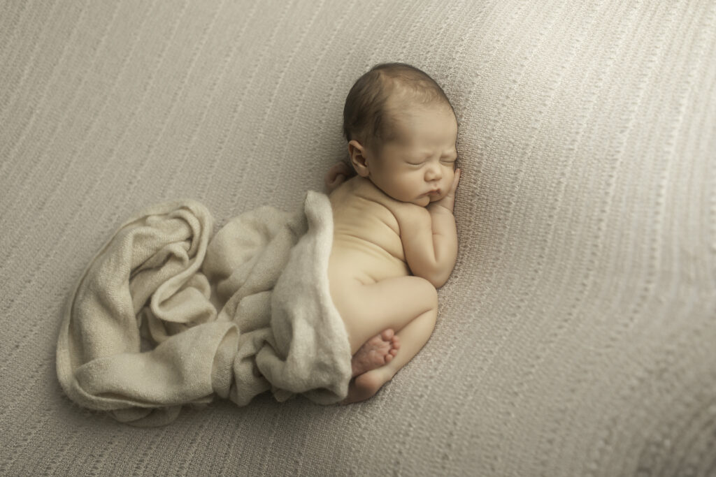 Once he drifted off to sleep, the session focused on capturing those peaceful, curled-up poses that are classic and timeless. The contrast between brief awake curiosity and deep sleep makes for a gallery full of personality and calm beauty.