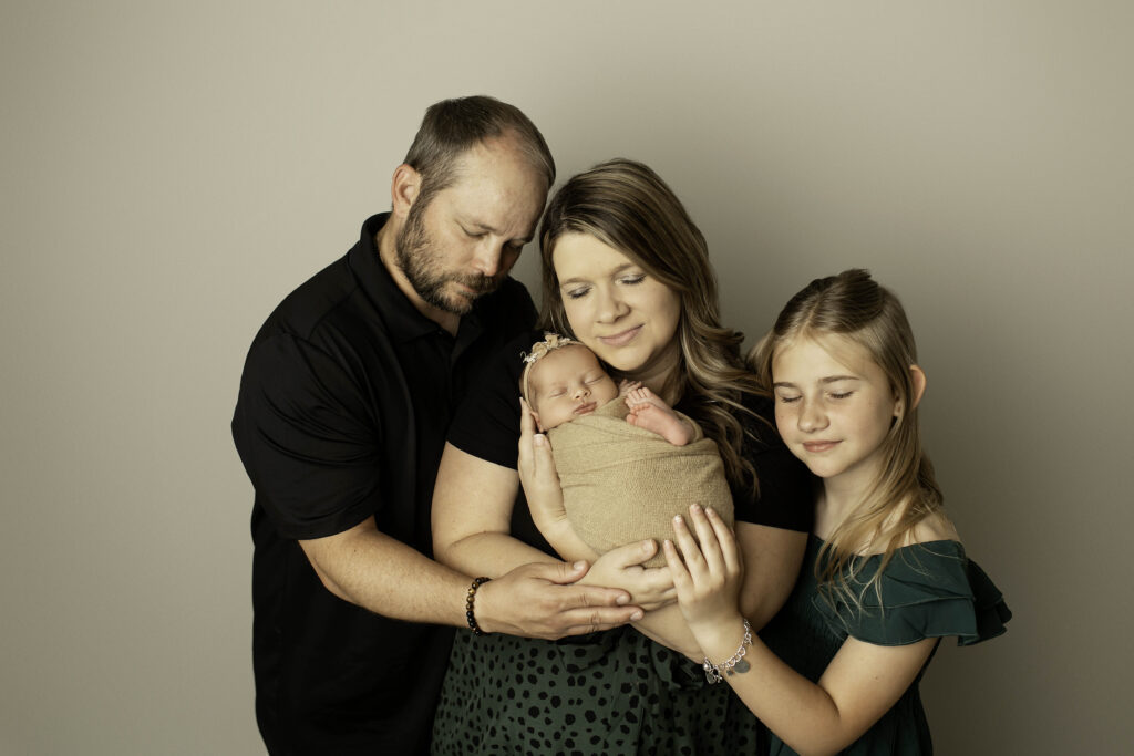 Of course, we didn’t stop with just sibling shots. Family portraits were an important part of this session too. There’s something so powerful about photographing parents holding their newborn together, looking down at the little life they created. Those are the moments that tell a family’s story and become heirlooms to pass down.