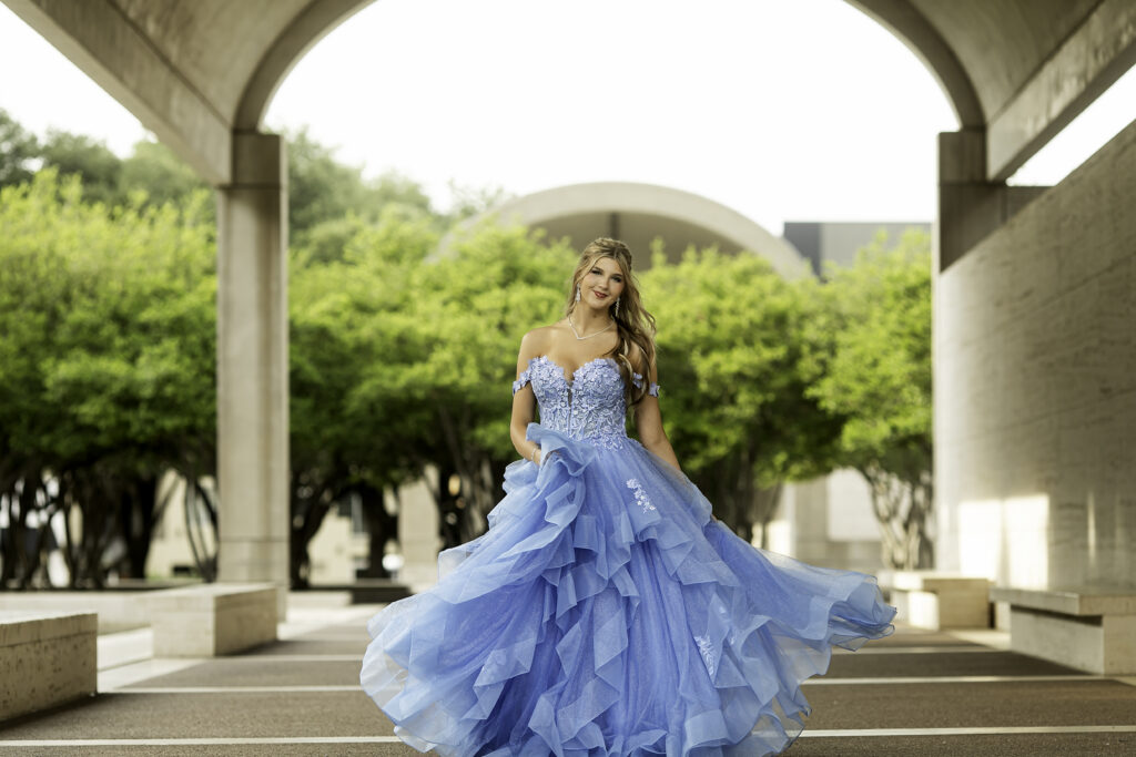 We headed to the Kimball Art Museum, which provided the perfect backdrop for a session full of light, art, and timeless beauty. The architecture and gardens complemented her gown perfectly, making every shot feel like it came straight out of a fairytale. It was such a joy to see her shine and have fun during this milestone moment.