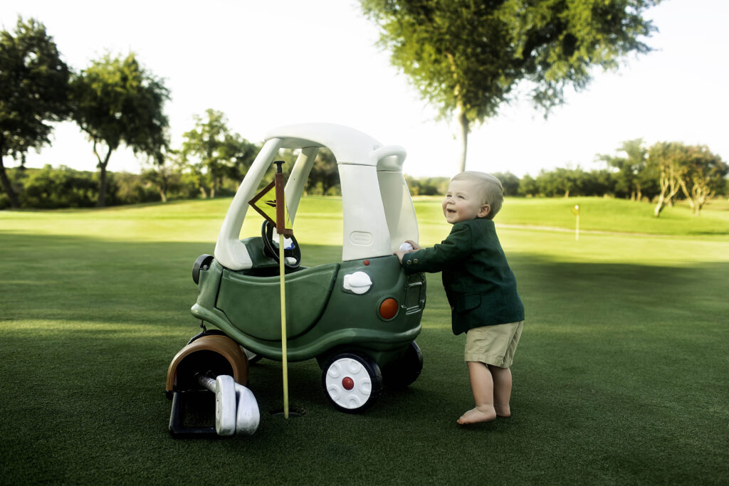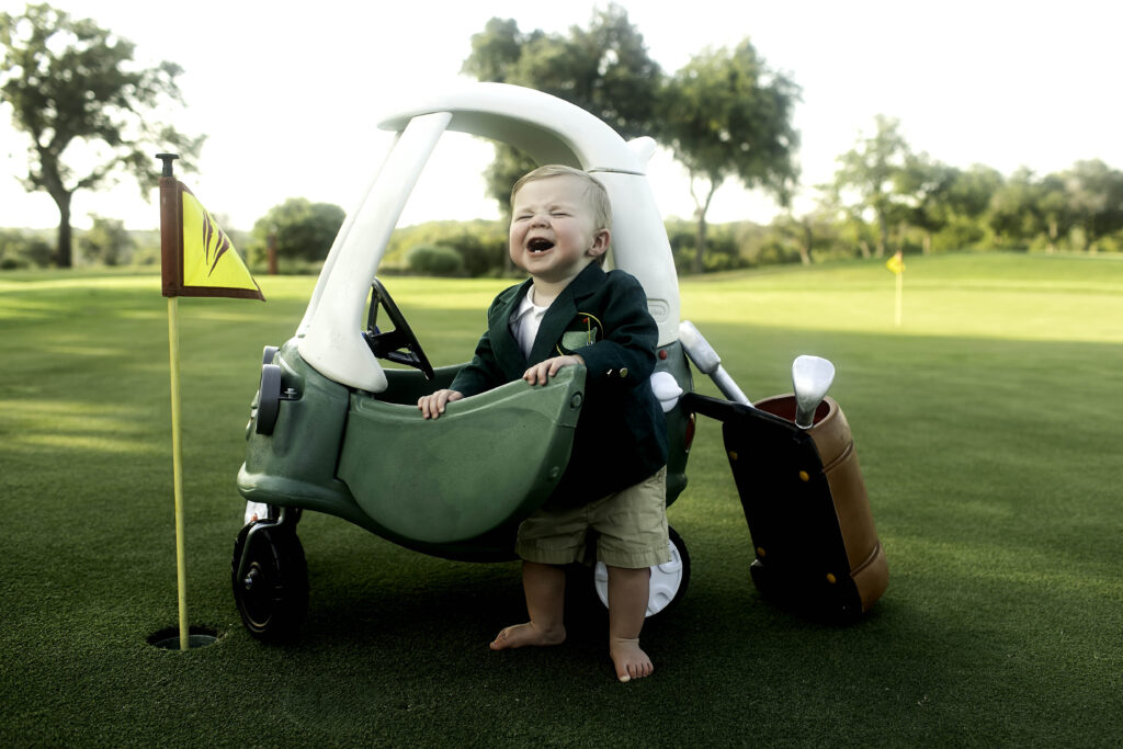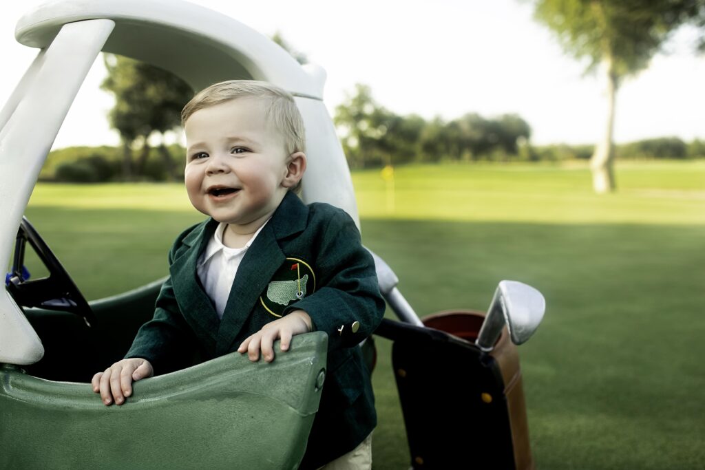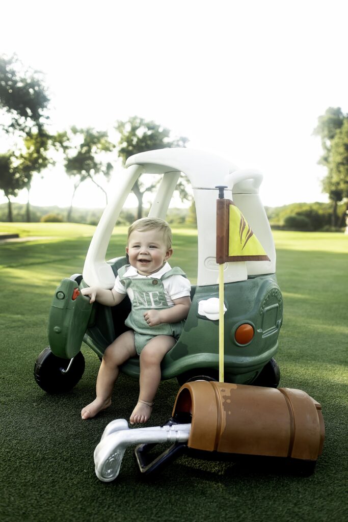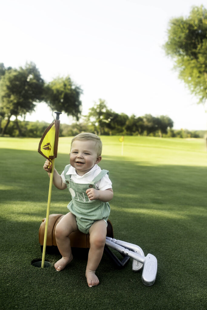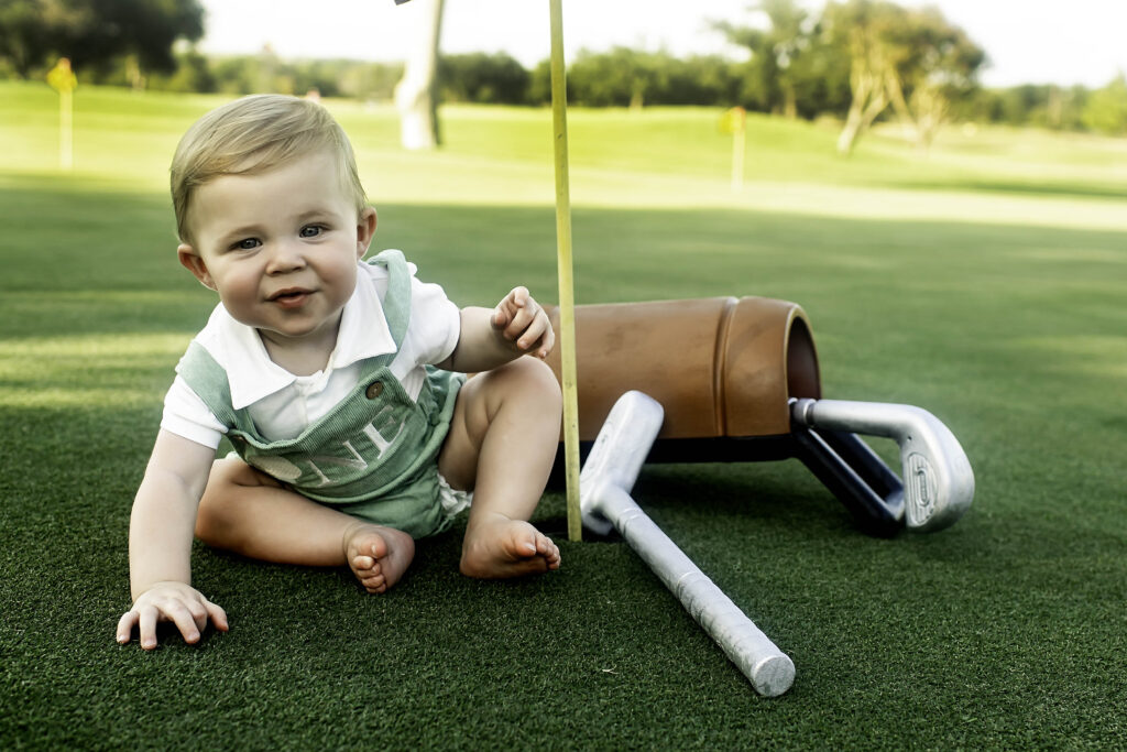 This session was a beautiful reminder that personalized themes make milestones unforgettable. From the big ideas—like the golf car and jacket—to the small details—like Dad holding a club to help guide little hands—every element came together to create a session full of charm, creativity, and joy.